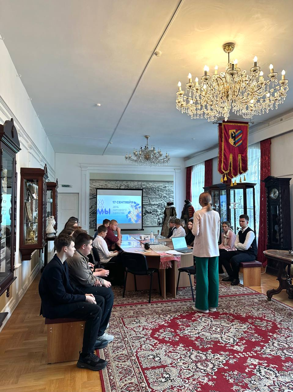 Научный сотрудник музея Любовь Анатольевна Золотарь-Грицкевич рассказала ребятам о ценности единства, о происхождении и значении праздника для страны и каждого из нас, об исторических событиях, ставших его основой.